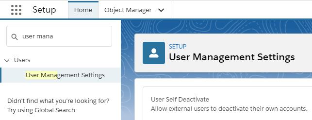 - Search for “user management“ on left pane and go to “User Management Settings“.