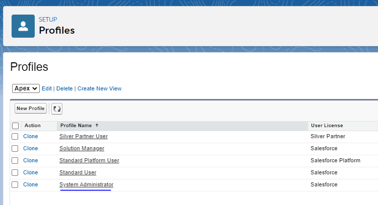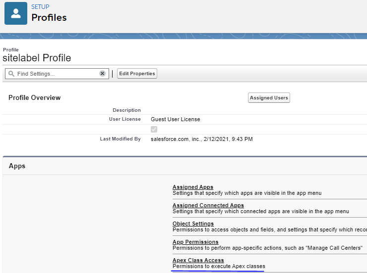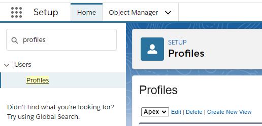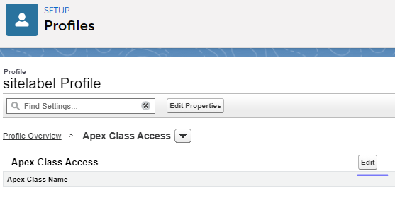 - “Profiles” page will be opened, here go to “Apex Class Access”
