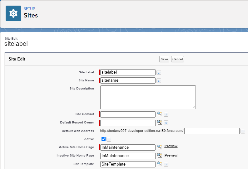 - Inactive Site Home Page (eg. “InMaintenance”)