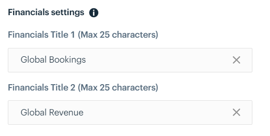 Within financials, you can upload 2 sets of data. You can choose what labels you would like to include for the tabs in the financials section (see image below). Using free text, enter the financial information you would like included for each section.