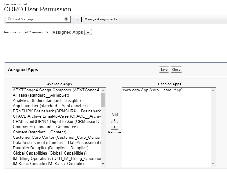 Once you have set up the managed package and the i-frame for Coro, you can restrict access to the i-frame via Permission Sets. Use the following instructions for more information on how to set up a Permission Set.